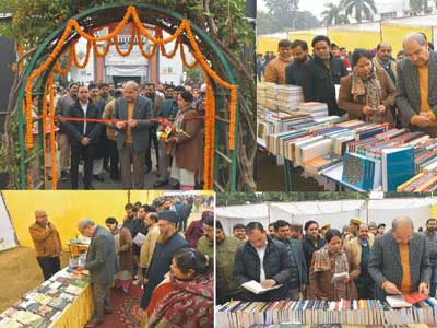 Enthusiastic book lovers, including students, research scholars, and faculty members browsed through books displayed at the stalls during the book exhibition organized by Maulana Azad Library, Aligarh Muslim University.