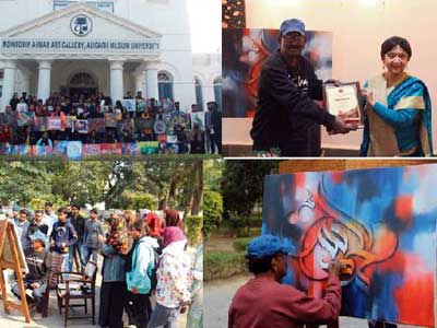 Collections of over 100 paintings depicting rich Iranian cultural history, artistically stylized calligraphy, and hand-knotted rugs and carpets were recently on view at the Moinuddin Ahmad Art Gallery, Aligarh Muslim University in the ‘Exhibition of Iranian Painting, Calligraphy and Carpet Weaving’ of the Institute of Persian Research in a day-long programme which also included interaction and discussion sessions with Iranian women writers, artists and calligraphers and the visiting Iranian delegation at the Institute of Persian Research and the Advanced Centre for Women’s Studies respectively.