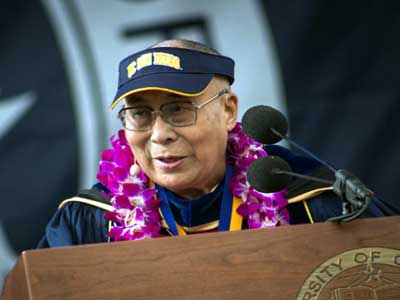 “You have the opportunity to create a better world, a happier world,” said 14th Dalai Lama, who delivered the keynote address to 25,000 University of California San Diego graduates and their families during the university’s All Campus Commencement. His message to graduates centered on the power of compassion and the importance of emotional knowledge. He emphasized that through loving kindness toward others, the next generation can manifest a more peaceful world.