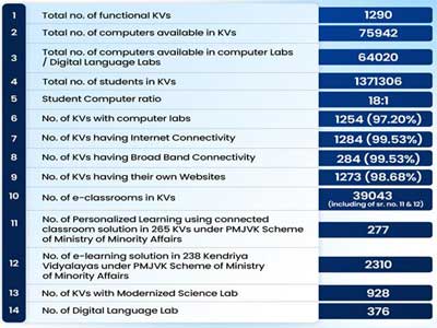 To strengthen the IT infrastructure, NVS is working to provide desktops/laptops as per the requirements of each NV. Currently, there are approximately 40 desktops per NV, totalling around 26,118 desktops across all NVs. 312 Digital Language Labs have also been established under the PM SHRI Project, along with 100 English and 100 Hindi Language Labs under the CBSE CSR Project.